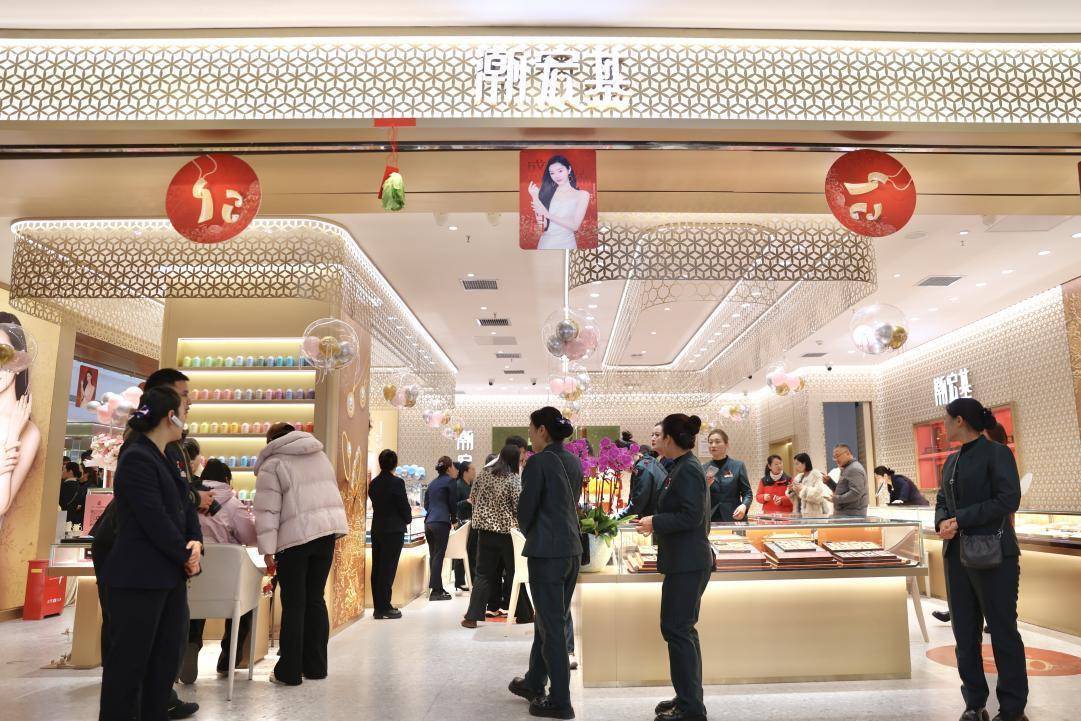 开业现场,欢快的音乐与精彩的舞狮表演相得益彰,吸引了众多市民驻足围观。门店内,一排排精致的展柜有序陈列,各式各样的黄金首饰在灯光下闪耀着璀璨光泽,从简约时尚的素圈戒指到工艺繁复的婚嫁套系,从适合日常佩戴的小巧吊坠到彰显气质的大件饰品,款式丰富、设计精巧,充分展现了潮宏基作为源于东方的时尚珠宝品牌,将现代美学精粹与匠心底蕴深度融合的独特魅力。店内工作人员身着统一着装,面带微笑,热情地向每一位进店顾客介绍产品特点、工艺细节及开业优惠活动,并耐心引导顾客试戴和选购,让顾客在温馨舒适的氛围中享受高品质的消费体验。